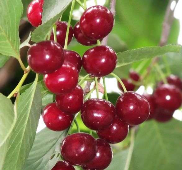 - Плоды: крупные, сочные, темно-красного цвета, с насыщенным сладким вкусом и легкой кислинкой